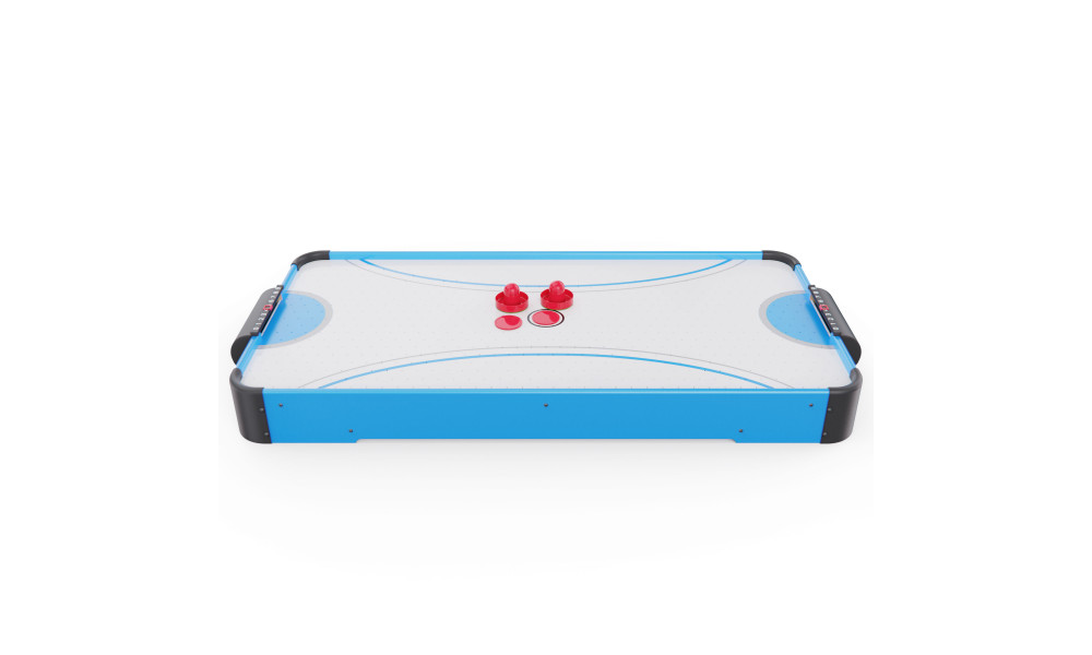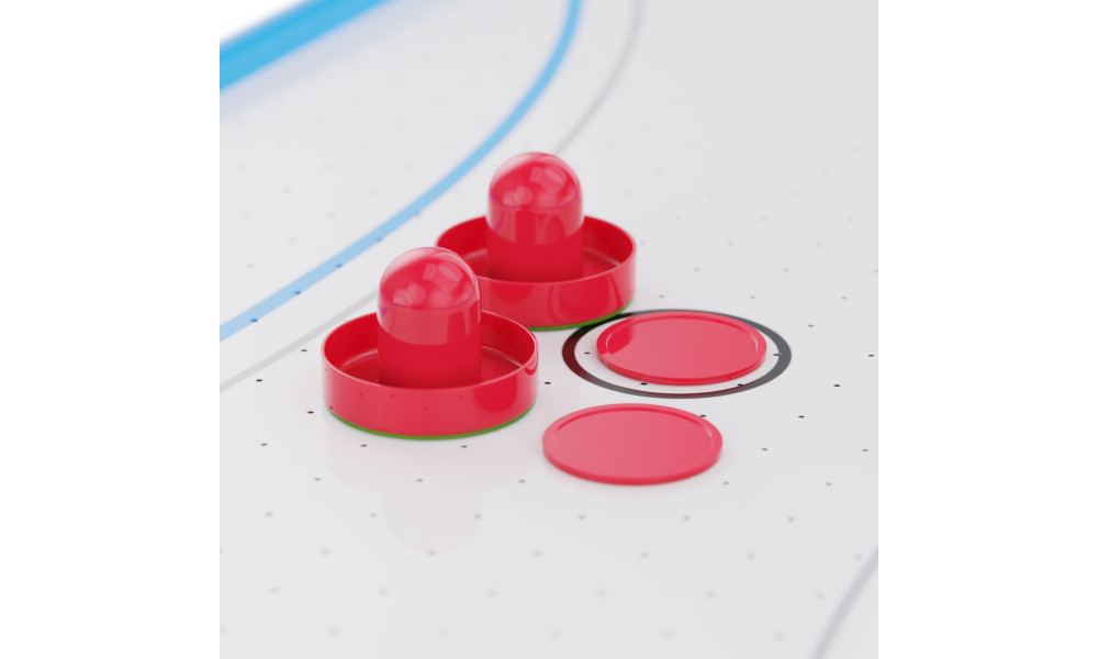 Игровой стол оснащён вентилятором на 220V, создающим воздушную подушку под шайбой. Это обеспечивает лёгкое и быстрое скольжение по полю, делая игру более захватывающей и реалистичной.